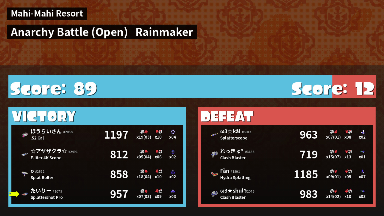| Mode | Rainmaker - Anarchy Battle (Open) | ||