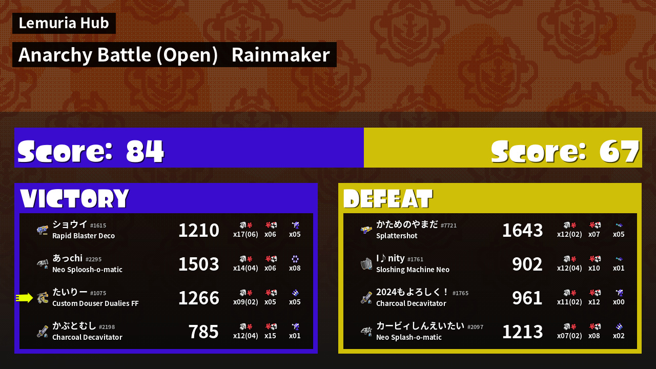 | Mode | Rainmaker - Anarchy Battle (Open) | ||