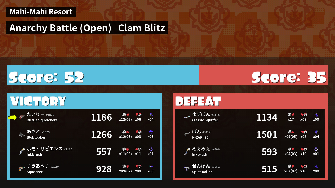| Mode | Clam Blitz - Anarchy Battle (Open) | ||