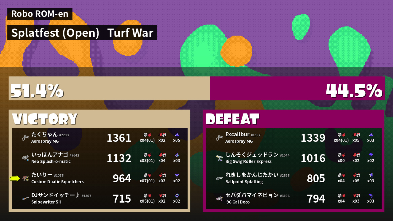 | Medals | #1 Overall Splatter #1 Popular Target #1 Enemy Splatter | ||