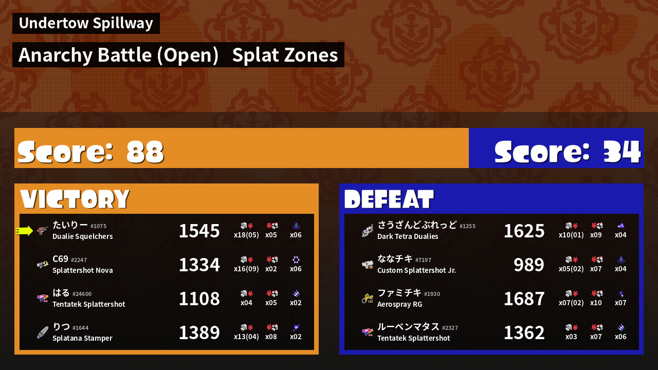 | Mode | Splat Zones - Anarchy Battle (Open) | ||