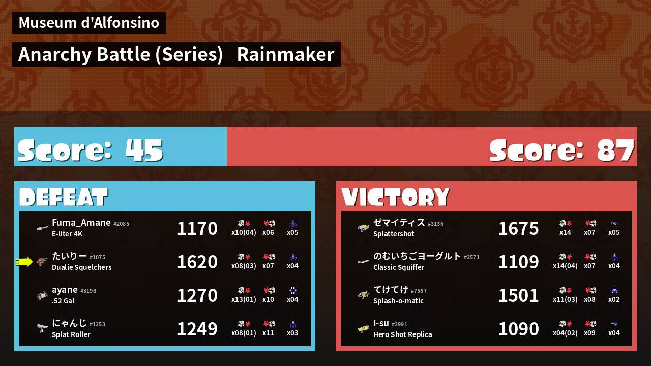 Results of tairi-'s Battle