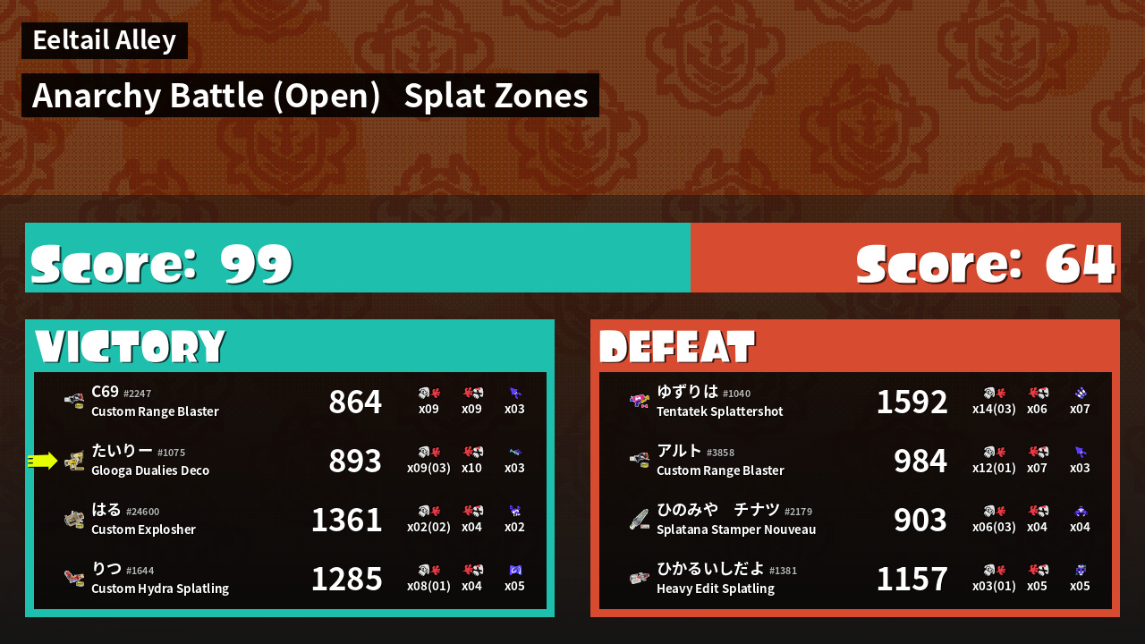 | Mode | Splat Zones - Anarchy Battle (Open) | ||