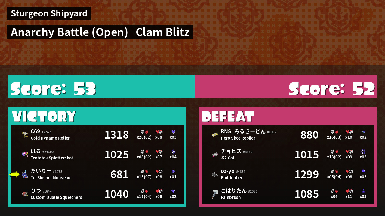 | Mode | Clam Blitz - Anarchy Battle (Open) | ||