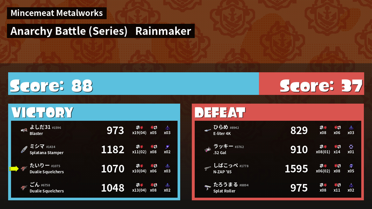 Results of tairi-'s Battle