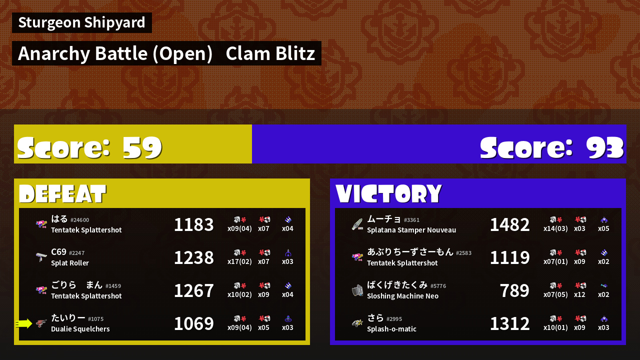 | Mode | Clam Blitz - Anarchy Battle (Open) | ||