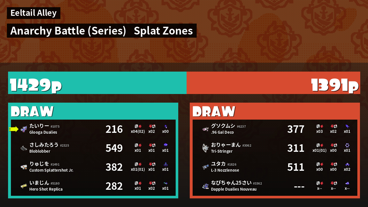 | Mode | Splat Zones - Anarchy Battle (Series) | ||