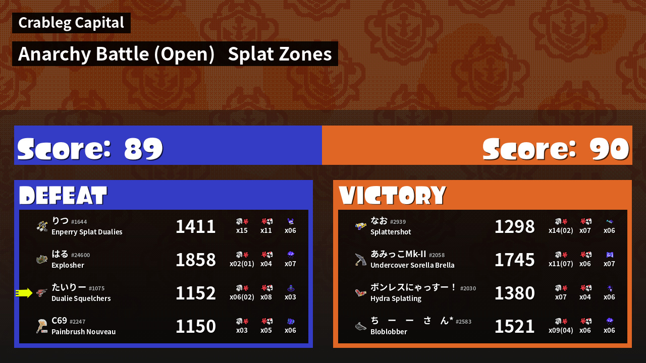 | Mode | Splat Zones - Anarchy Battle (Open) | ||