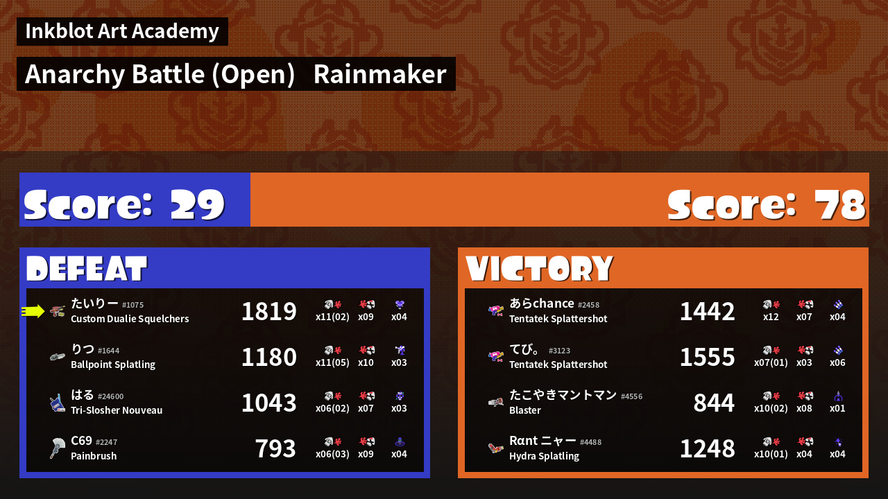| Mode | Rainmaker - Anarchy Battle (Open) | ||