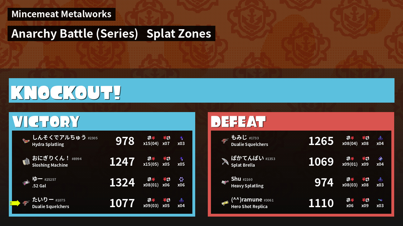 | Mode | Splat Zones - Anarchy Battle (Series) | ||