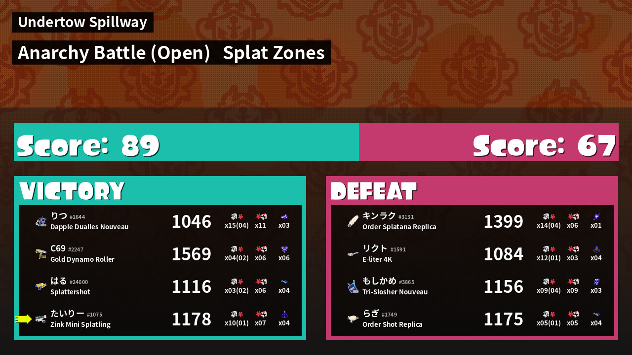 User Agent | s3s / v0.6.4 | ||
