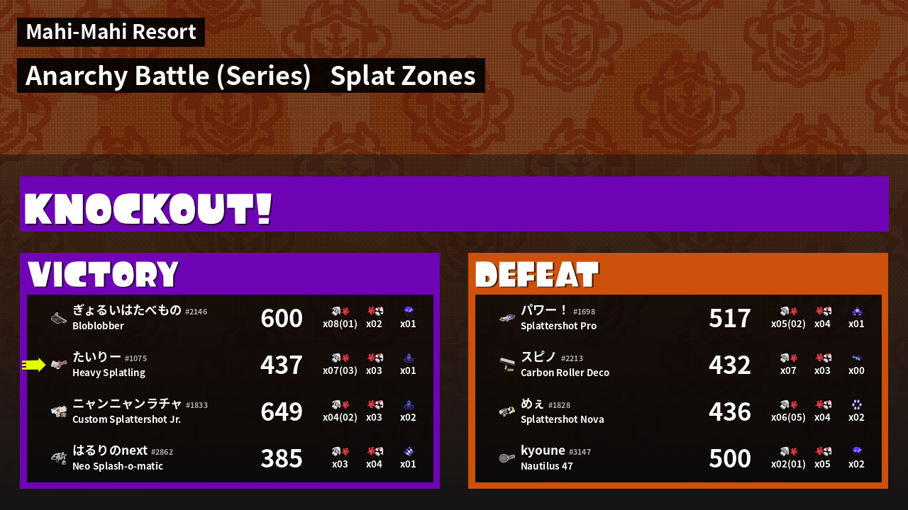 | Mode | Splat Zones - Anarchy Battle (Series) | ||