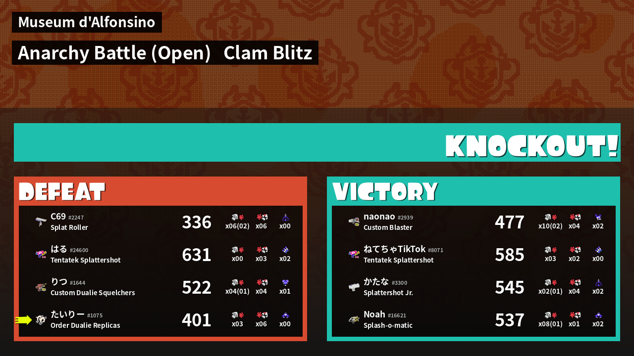 | Mode | Clam Blitz - Anarchy Battle (Open) | ||