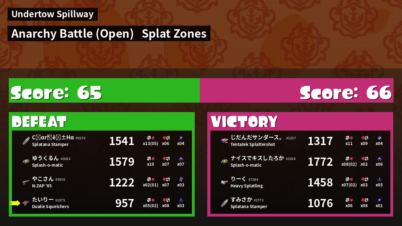 | Mode | Splat Zones - Anarchy Battle (Open) | ||