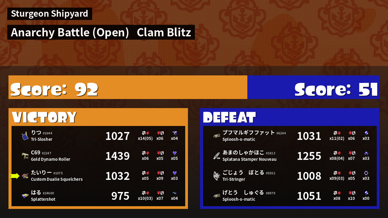 | Mode | Clam Blitz - Anarchy Battle (Open) | ||