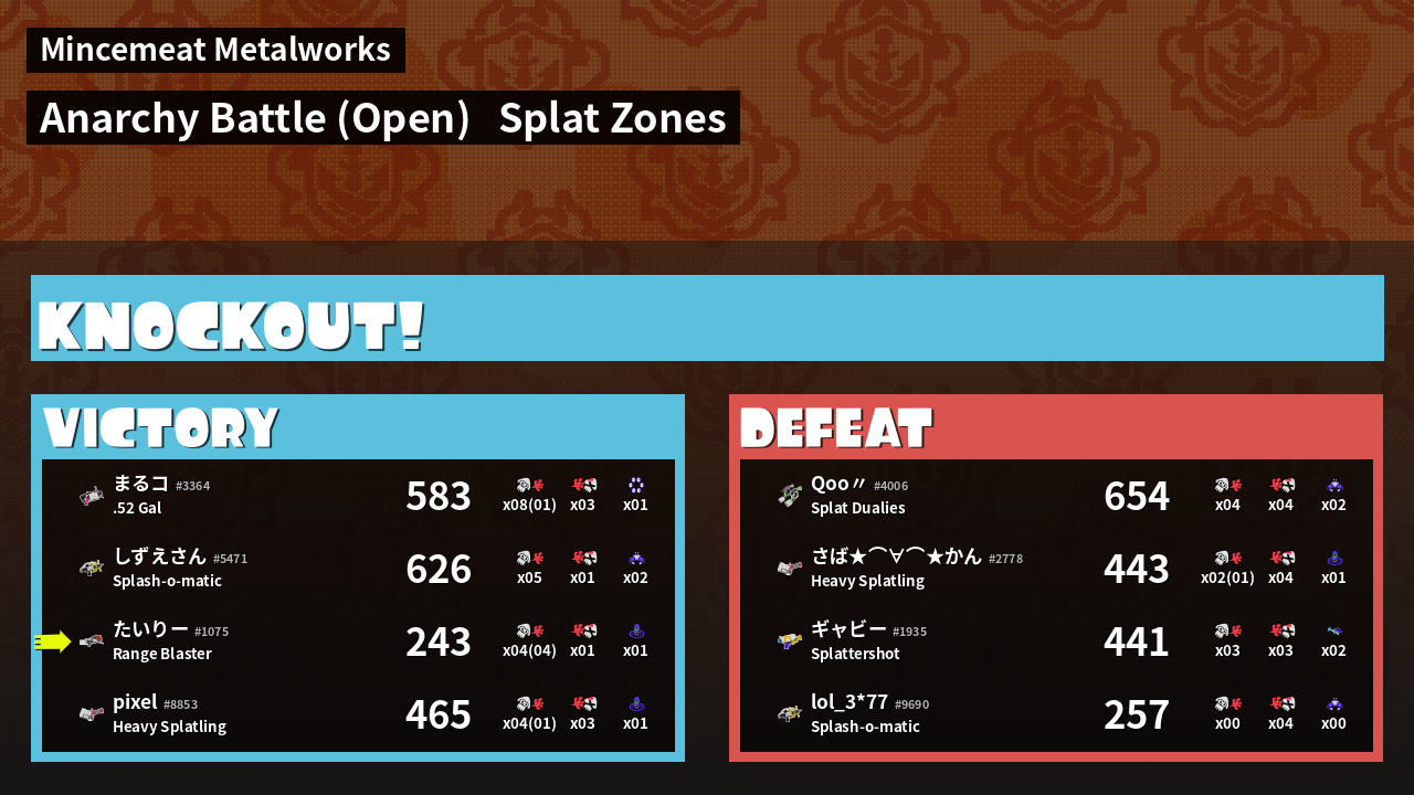 Results of tairi-'s Battle