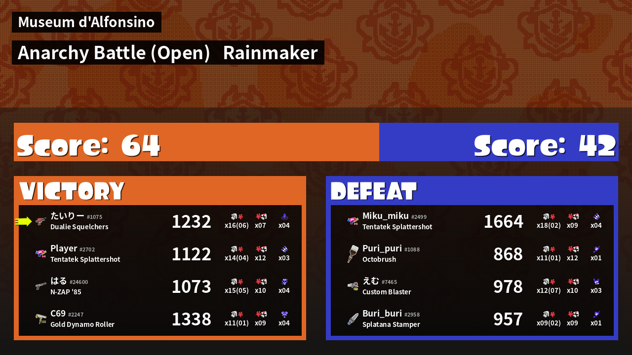 | Mode | Rainmaker - Anarchy Battle (Open) | ||