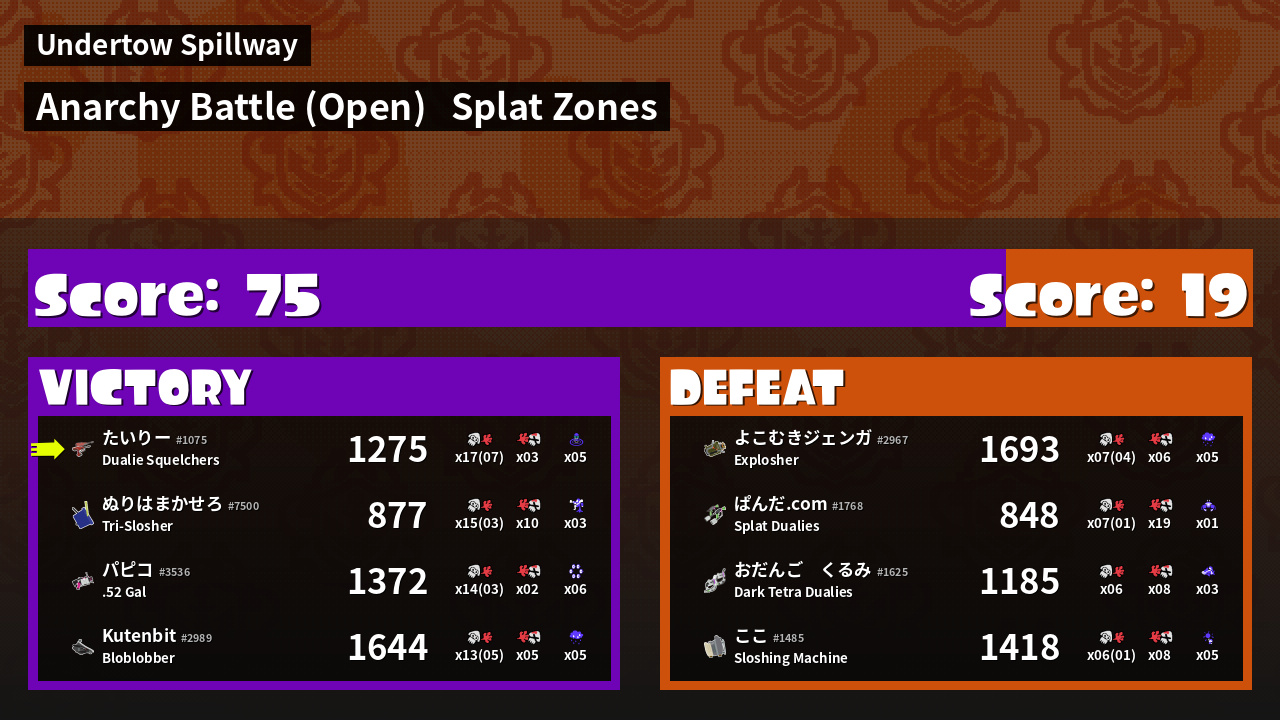 | Mode | Splat Zones - Anarchy Battle (Open) | ||