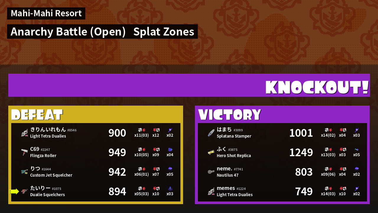 | Mode | Splat Zones - Anarchy Battle (Open) | ||