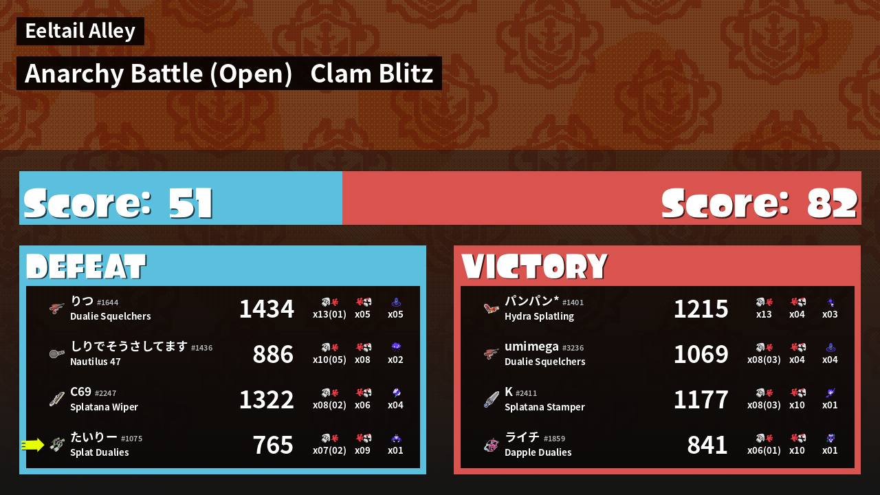 | Mode | Clam Blitz - Anarchy Battle (Open) | ||