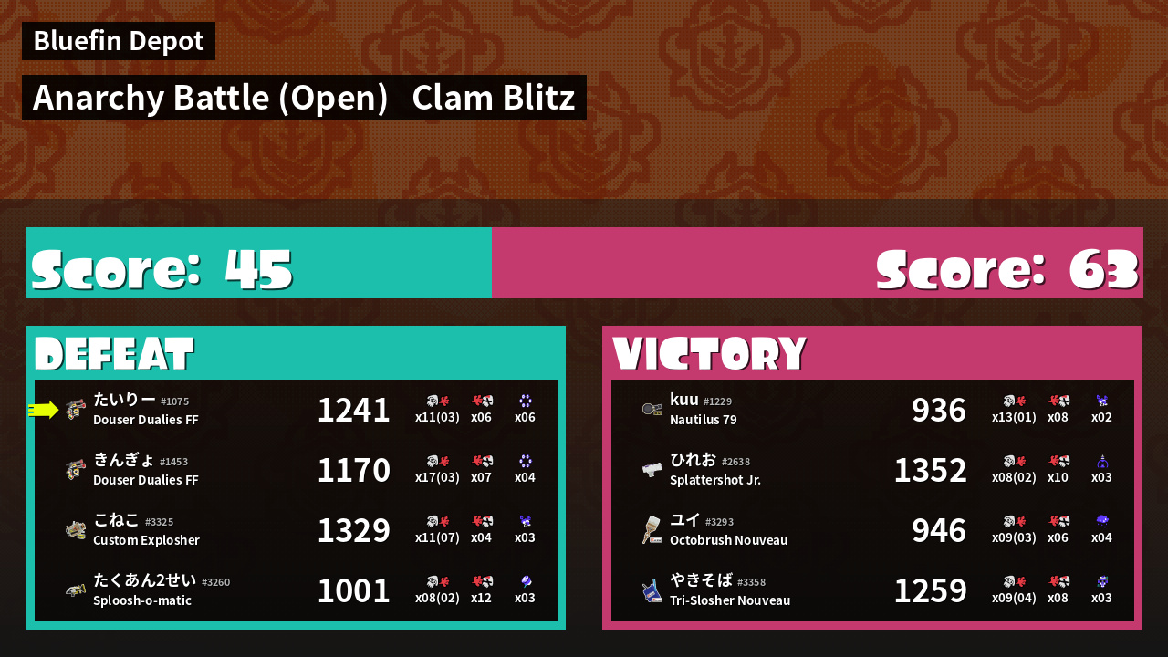 | Mode | Clam Blitz - Anarchy Battle (Open) | ||