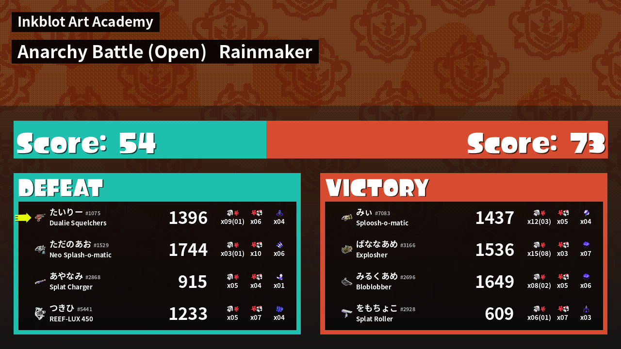 Name | Weapon | Inked | ![]() |
