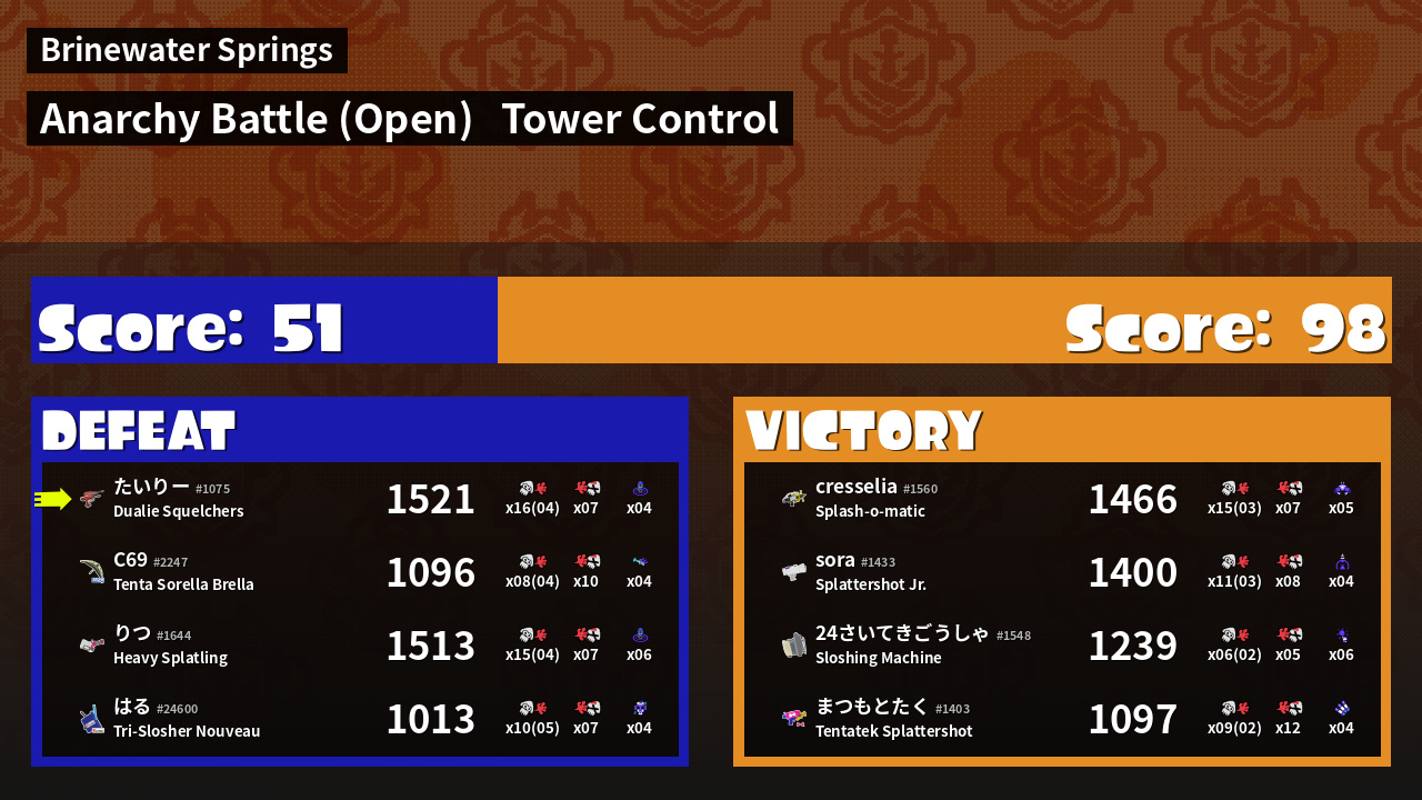 | Mode | Tower Control - Anarchy Battle (Open) | ||