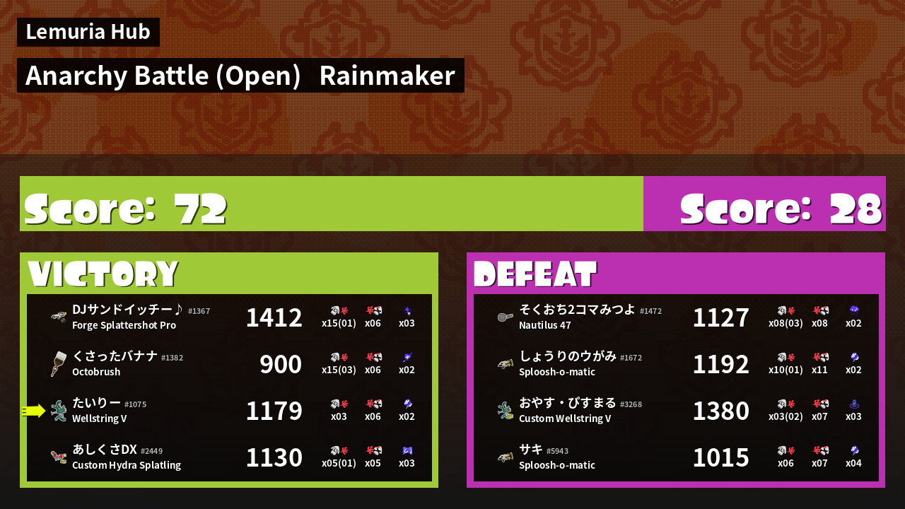 | Mode | Rainmaker - Anarchy Battle (Open) | ||