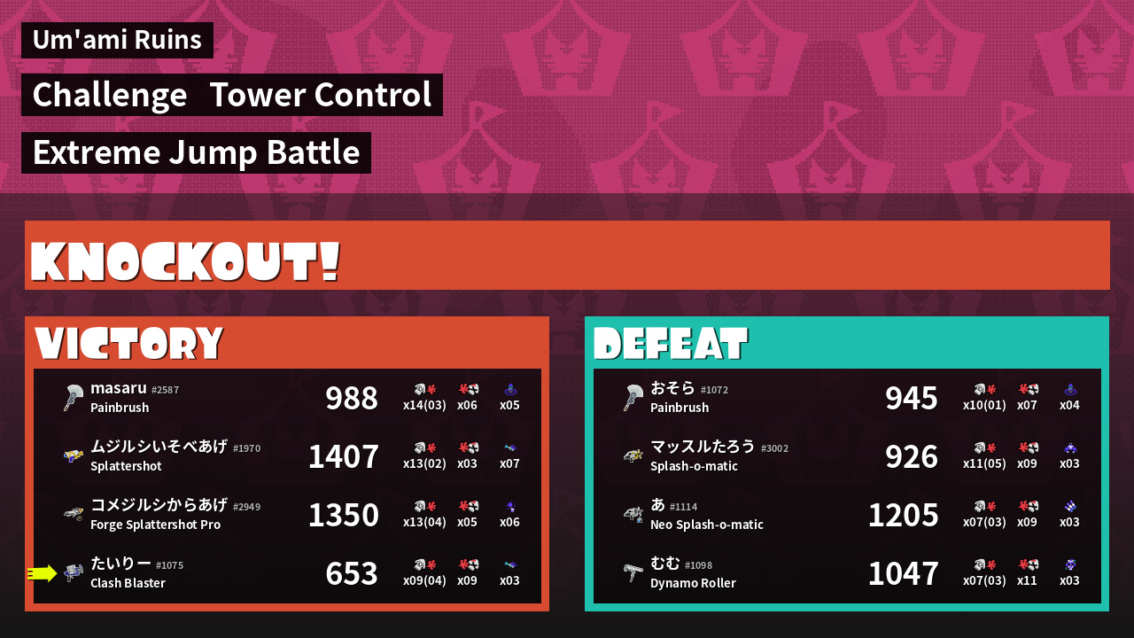| Medals | #1 Splat Assister #1 Checkpoint Breaker #1 Ink Consumer | ||