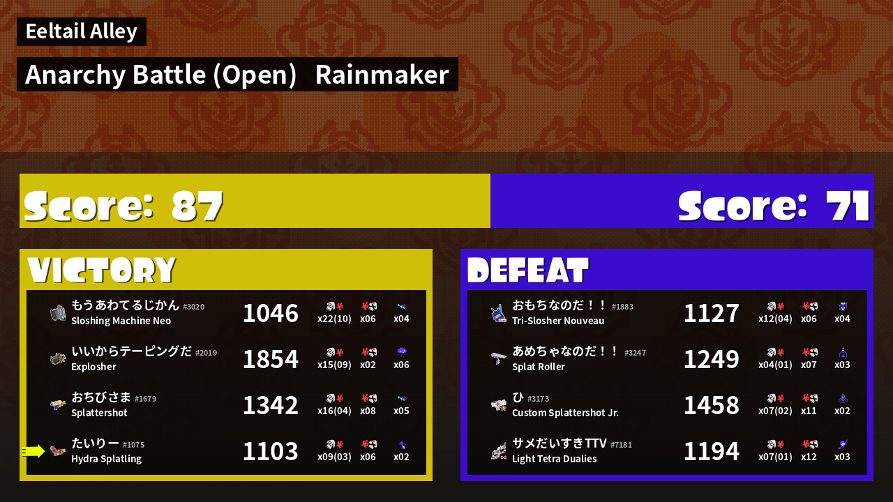 Kills / Deaths | 6 + 3 / 6 = Kill Ratio: 1.00 | ||
