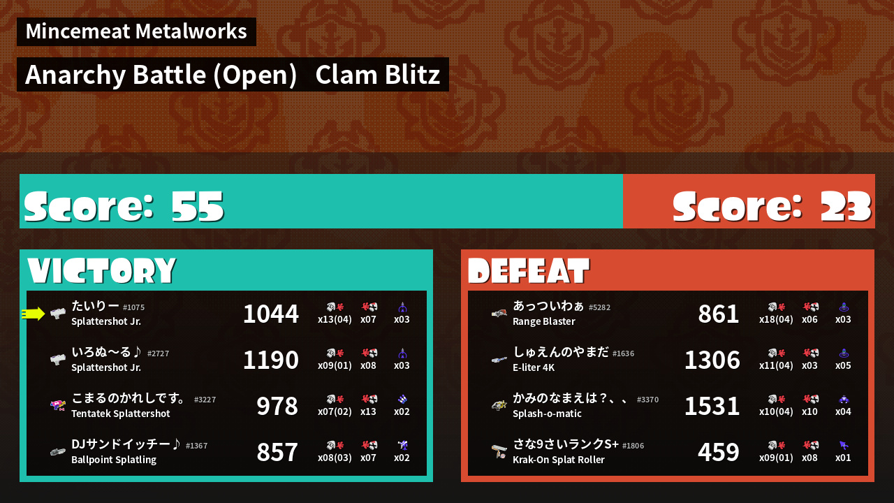 | Mode | Clam Blitz - Anarchy Battle (Open) | ||