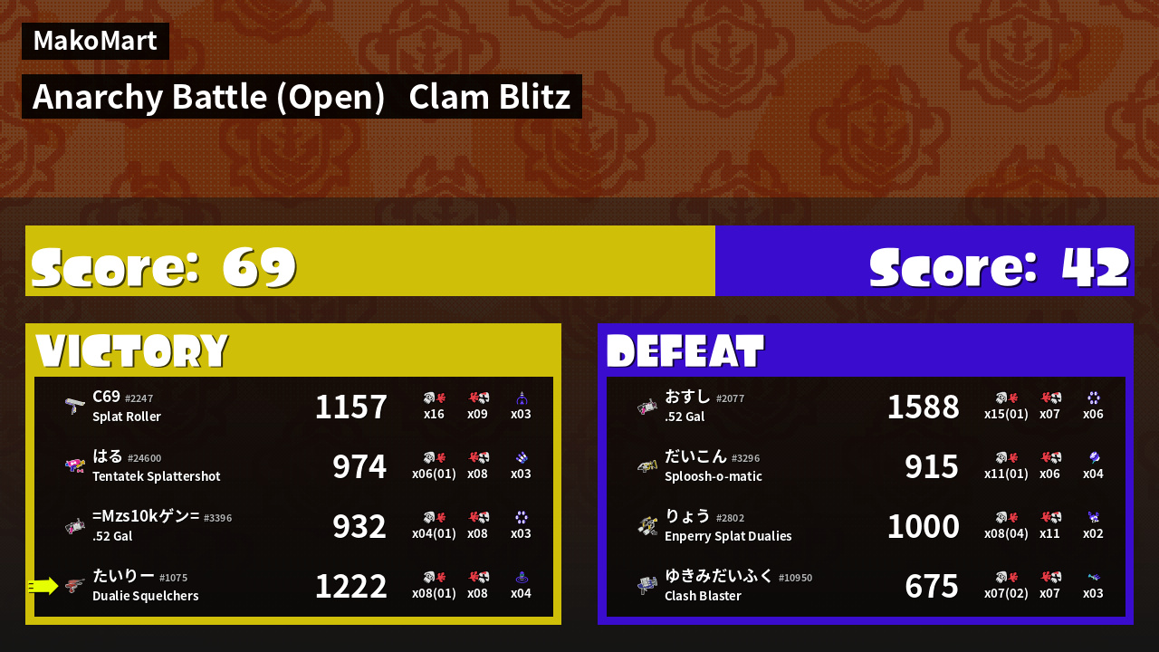 | Mode | Clam Blitz - Anarchy Battle (Open) | ||
