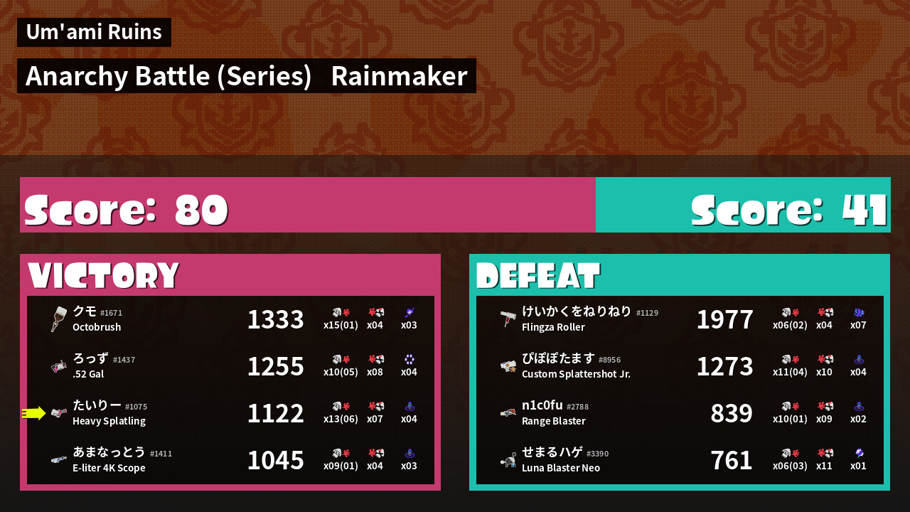 | Weapon | Heavy Splatling ( Sprinkler / Wave Breaker) | ||
