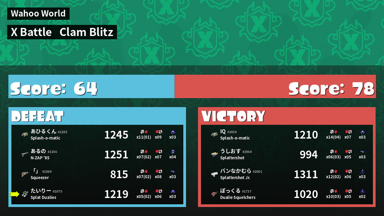 | Medals | #1 Super Jump Spot #1 Splat Assister #1 Ink Consumer | ||
