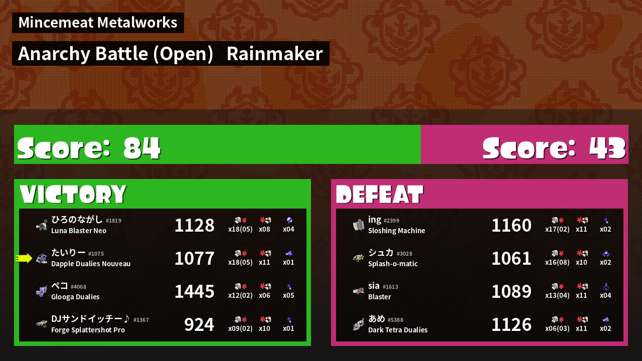 Kills / Deaths | 13 + 5 / 11 > Kill Ratio: 1.18 | ||