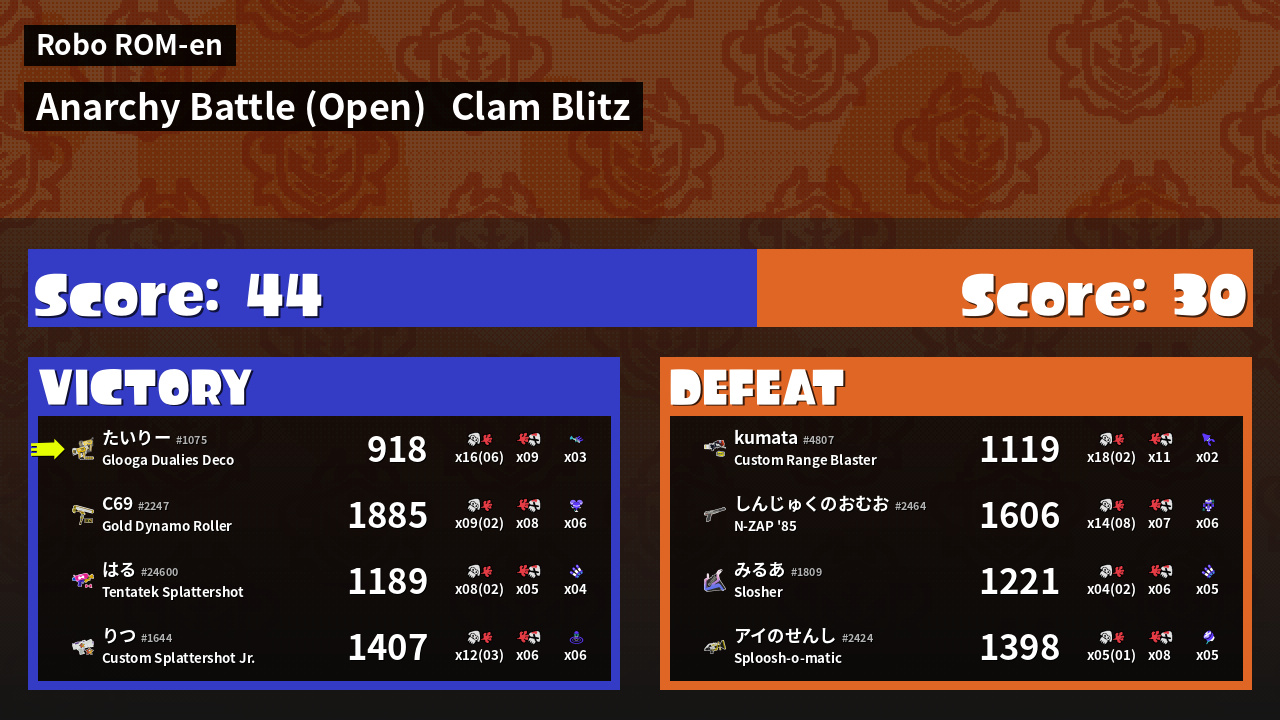 | Mode | Clam Blitz - Anarchy Battle (Open) | ||