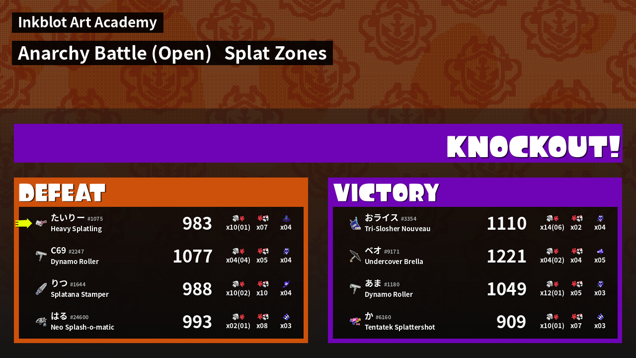 | Mode | Splat Zones - Anarchy Battle (Open) | ||