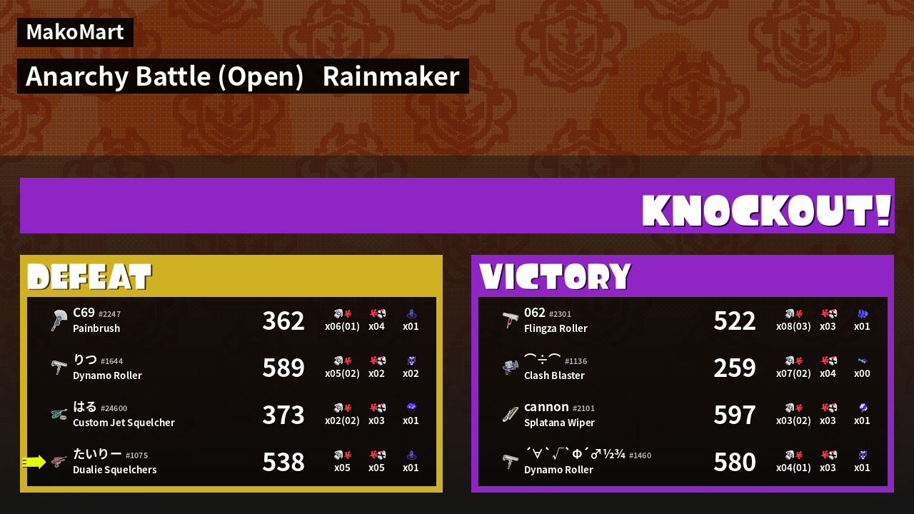 | Mode | Rainmaker - Anarchy Battle (Open) | ||