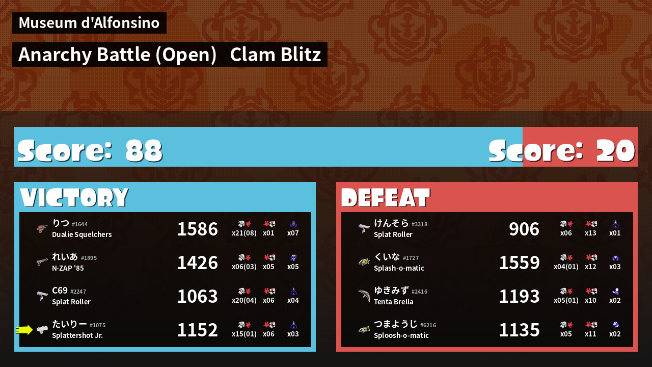 | Mode | Clam Blitz - Anarchy Battle (Open) | ||