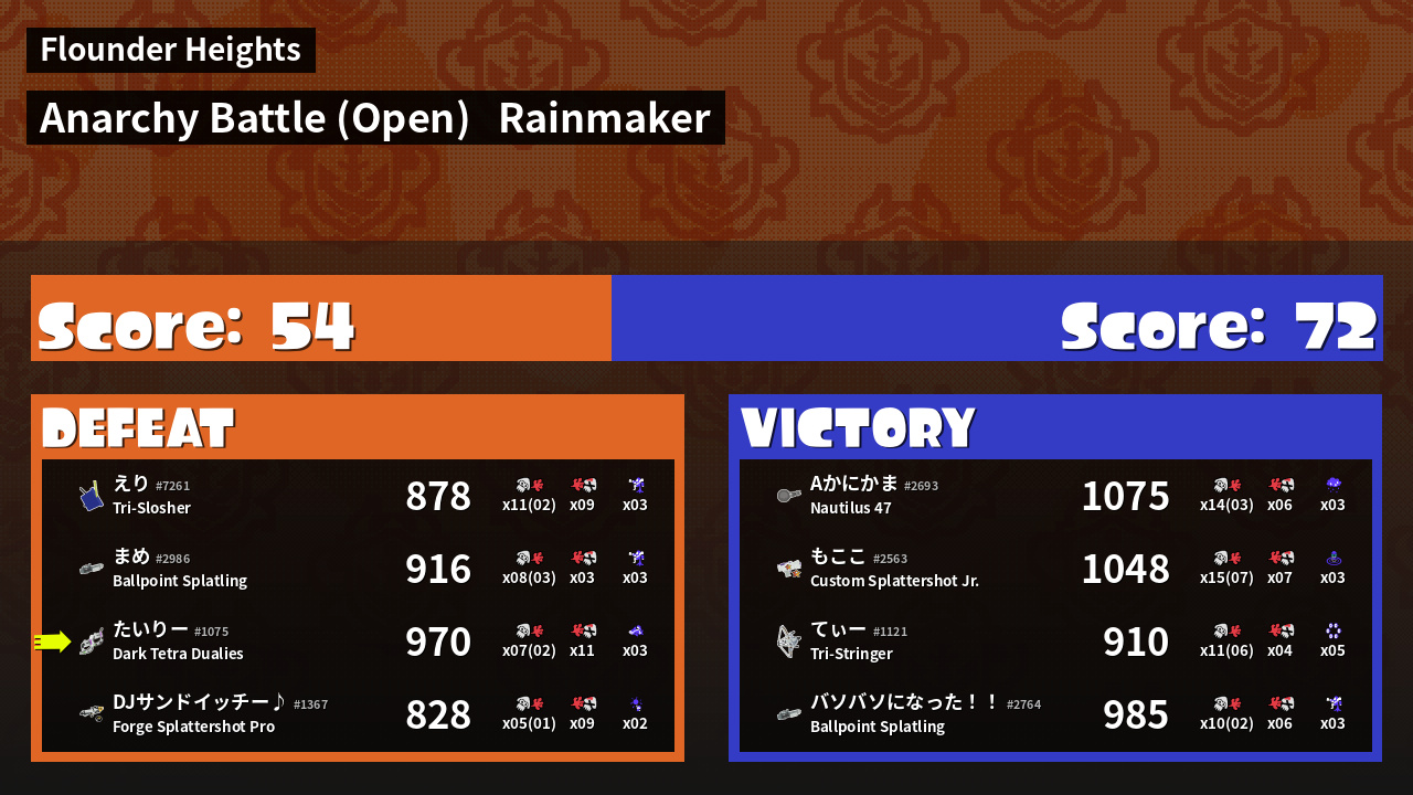 | Mode | Rainmaker - Anarchy Battle (Open) | ||
