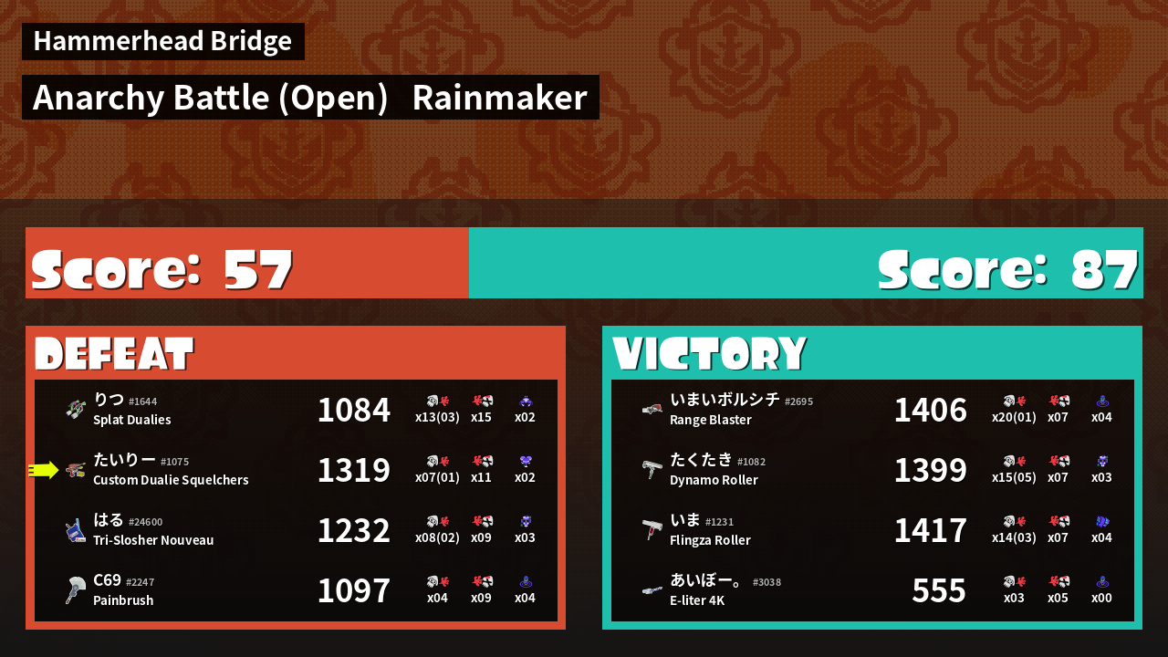 | Mode | Rainmaker - Anarchy Battle (Open) | ||
