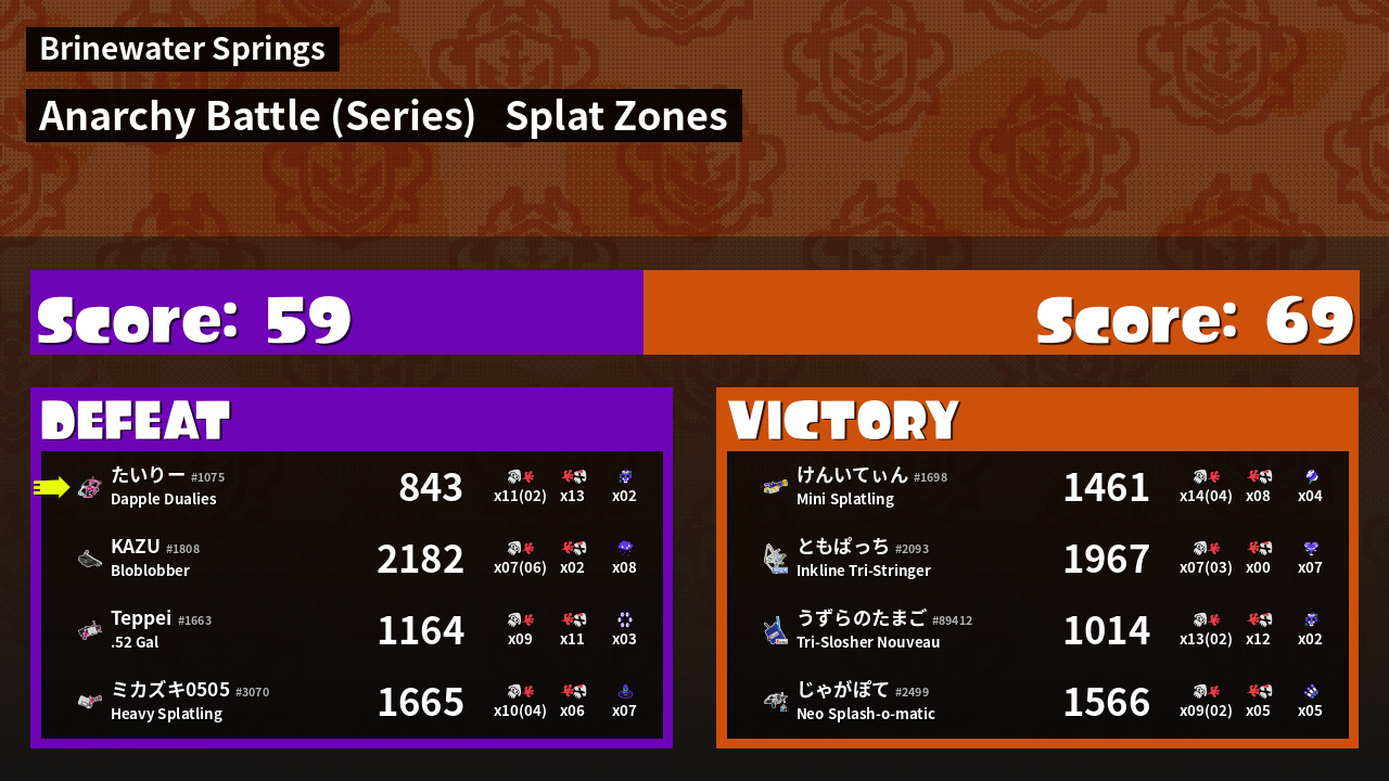 | Mode | Splat Zones - Anarchy Battle (Series) | ||