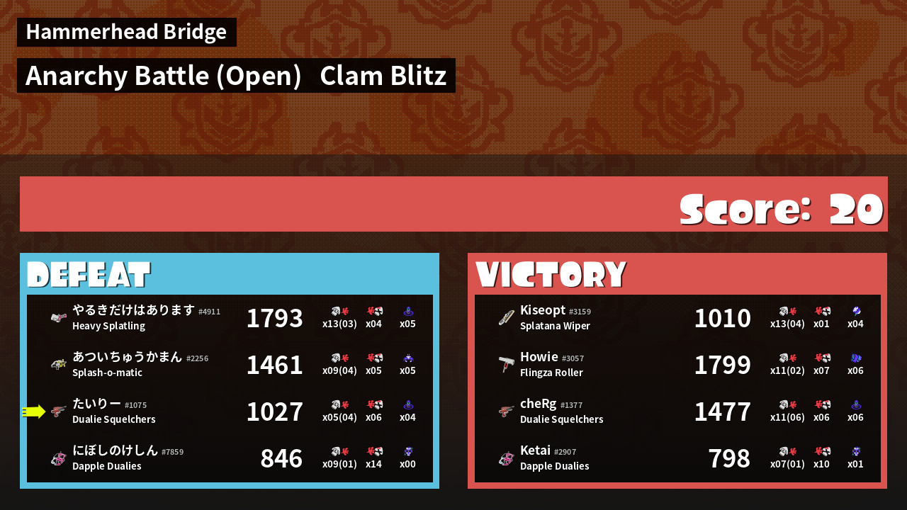 | Mode | Clam Blitz - Anarchy Battle (Open) | ||