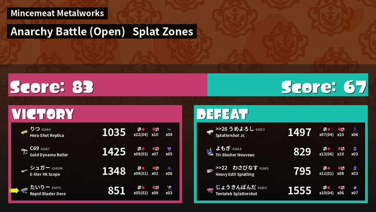 | Mode | Splat Zones - Anarchy Battle (Open) | ||