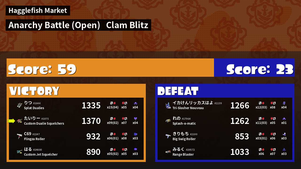 | Mode | Clam Blitz - Anarchy Battle (Open) | ||