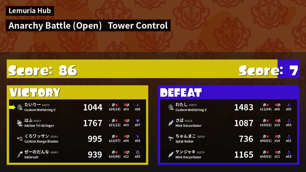 | Mode | Tower Control - Anarchy Battle (Open) | ||