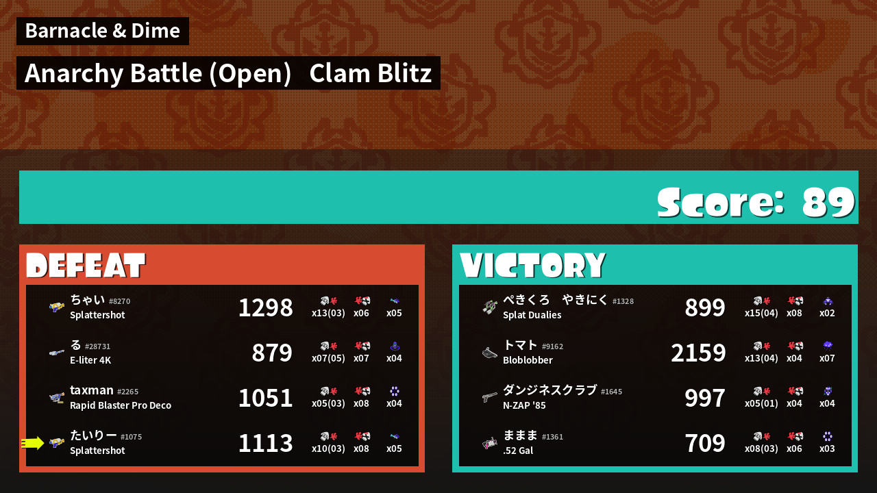 | Mode | Clam Blitz - Anarchy Battle (Open) | ||