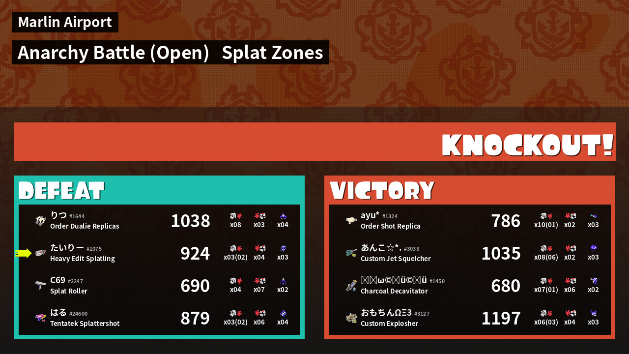 | Mode | Splat Zones - Anarchy Battle (Open) | ||