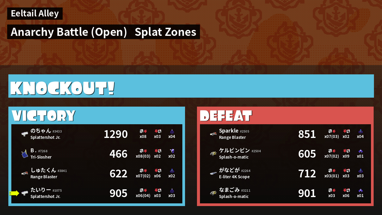 | Mode | Splat Zones - Anarchy Battle (Open) | ||