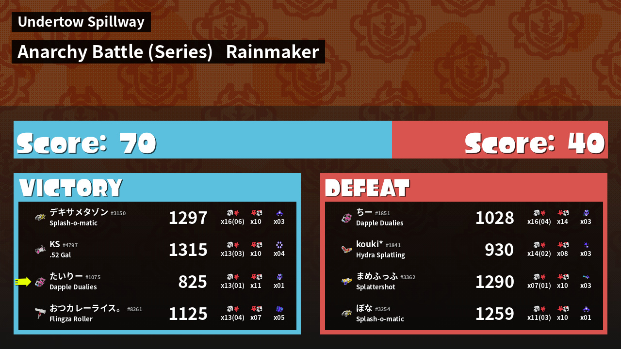 Results of tairi-'s Battle